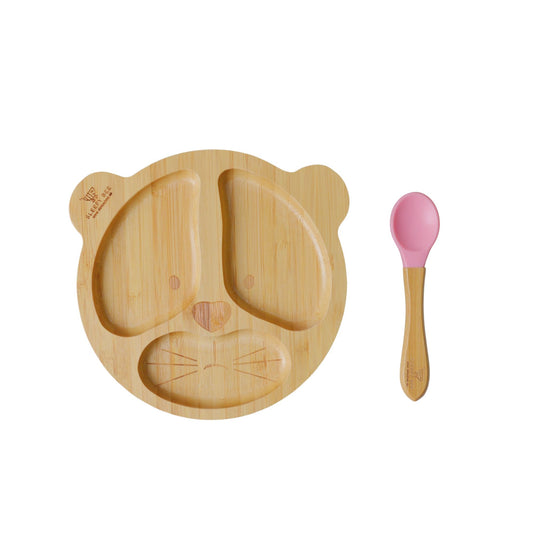 • أطباق حيوانات شفط من الخيزران مع ملعقة